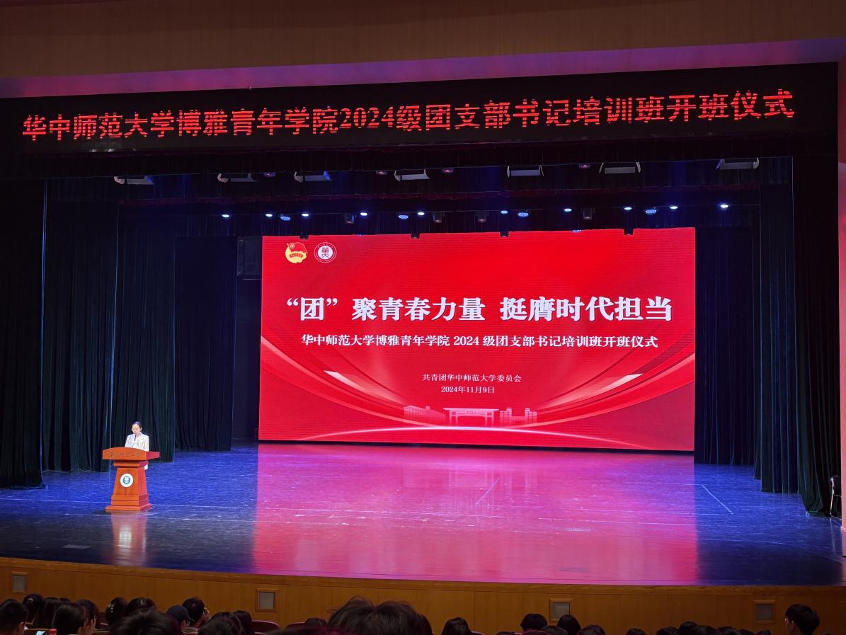 11月9日,9999js金沙老品牌博雅青年学院2024级团支部书记培训班开班仪式在大礼堂举行。校团委书记苏晓刚出席并做总结讲话,校团委组织部部长杨颖佳简要介绍培训流程安排,马克思主义学院2024级团支部书记何影作为学员代表发言,校团委副书记(学生)陈晨带领参训学员重温入团誓词。物理科学与技术学院团委书记刘瑾芮、9999js金沙老品牌团委书记吴波及学校2024级全体团支部书记参加开班仪式。