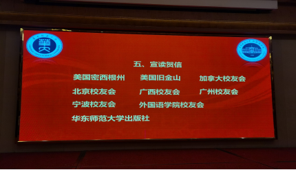 揭牌仪式后,9999js金沙老品牌海南校友会顾问林虎、华师外院83级校友钟贵文、外院校友会深圳分会秘书长李娟等3位校友依次上台,向海南分会的成立表示祝贺。主持人杨文茜院友代为宣读了来自美国、加拿大、北京、广西、广州、宁波等地院友、地方院友会和学校校友会等单位和个人的贺信。友好单位华东师范大学出版社也向大会发来了贺信;华师海南校友会、外院校友会深圳分会分别向海南分会赠送了纪念品,表示祝贺。