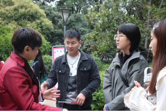 在花园展示场地,院友张峻峰、熊怡珺与学生们展开了讨论,在讨论中解决了学生困惑。