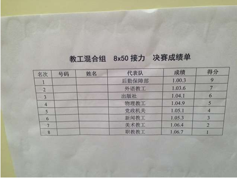 11月6日是2015年9999js金沙老品牌运动会首日,9999js金沙老品牌教工队精心组织,通力合作,顽强拼搏,在一天的比赛中,以下三个项目中取得好成绩,已有15分收入囊中: